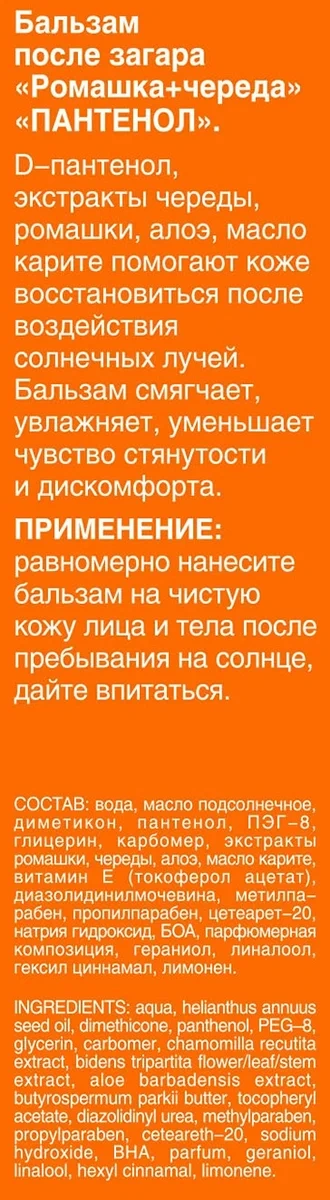 Бальзам после загара Пантенол с ромашкой 5% и чередой, 90мл