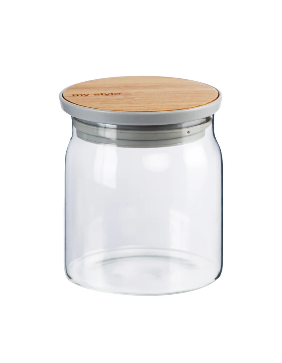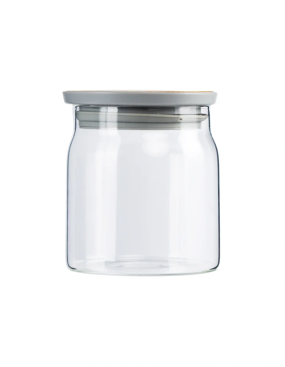 Банка сделана из боросиликатного стекла с крышкой из бамбука. Герметичная крышка с силиконовым уплотнителем. Экологически чистые материалы.Можно мыть в посудомоечной машине на верхнем уровне (без крышки), замораживать и использовать в микроволновой печи (без крышки).