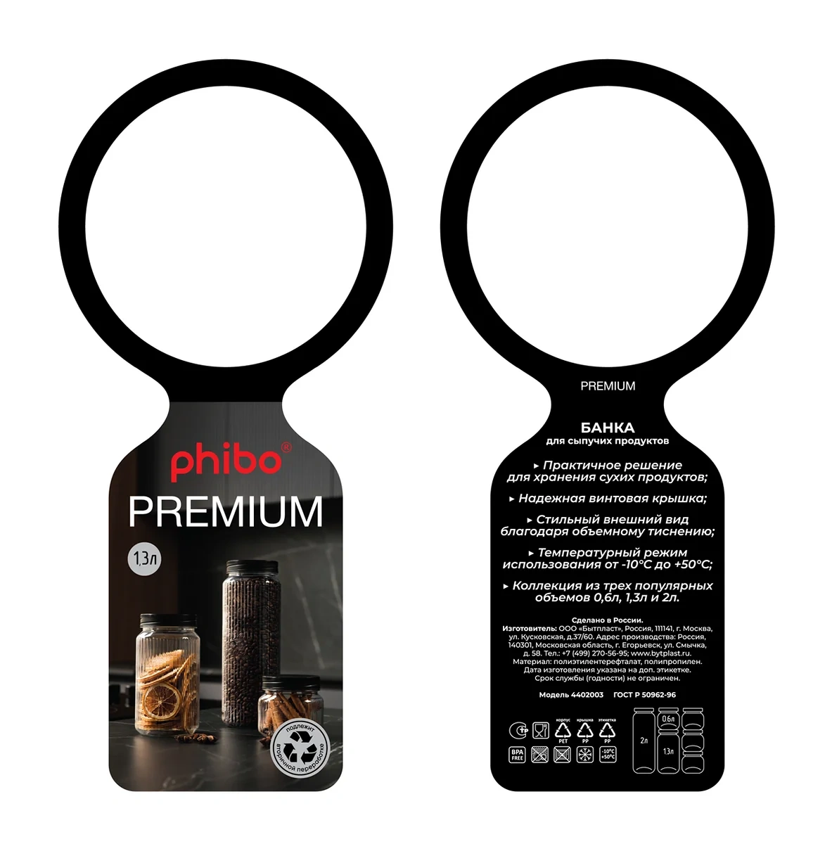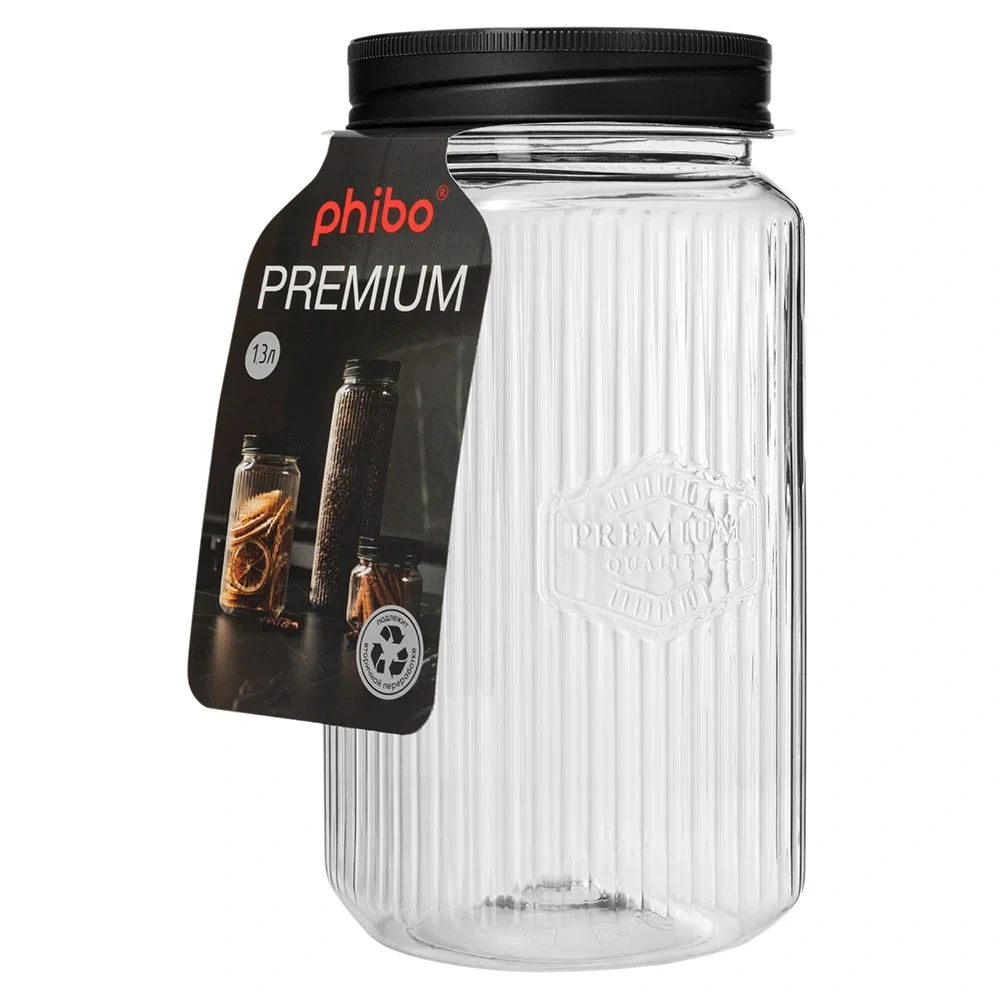 Банка для хранения Phibo Premium, 1.3л - стильные банки Phibo квадратной формы с вертикальным рельефом и эмбоссингом (эффектом тиснения) из коллекции Premium - это удобное и практичное решение для хранения не только сухих продуктов, но и меда, варенья и многого другого. Корпус банок прозрачный, как стекло, но в то же время легкий и прочный. Благодаря своей изысканной форме банки соответствуют современным тенденциям в области дизайна и украсят интерьер любой кухни. Коллекция банок состоит из трех наиболее востребованных объемов 0,6л, 1,3л и 2,0л. Винтовая крышка сохранит свежесть продуктов и не пропустит влагу или посторонние запахи. Температурный режим использования: от -10C до +50C. Банки производятся из высококачественного пищевого российского сырья, подлежат вторичной переработке.