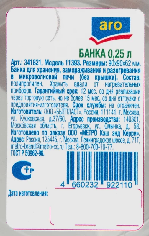 aro Банка Твист с завинчивающейся крышкой 250 мл, 9 х 9 х 6.2см — идеальное решение для хранения, замораживания и разогрева в микроволновой печи (без крышки) разнообразных продуктов и готовых блюд. Ее удобная винтовая крышка обеспечивает безопасный транспорт продуктов без риска случайного открытия. Прозрачные стенки и крышка позволяют легко оценить содержимое. Идеально подходит для хранения специй, масел, салатов и домашних заготовок, транспортировки завтраков, обедов или ужинов в дороге или на работе, использования в микроволновой печи облегчает подогрев готовых блюд. Банки устойчивы к мытью в посудомоечной машине, что делает уход за ними легким и удобным.