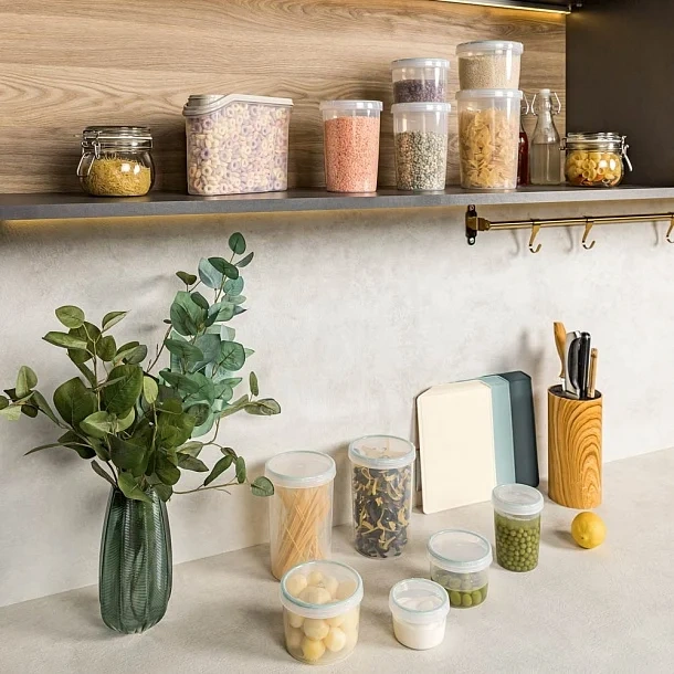 Банка для сыпучих продуктов Phibo Винтаж 1.5л, пластик, с закручивающейся крышкой