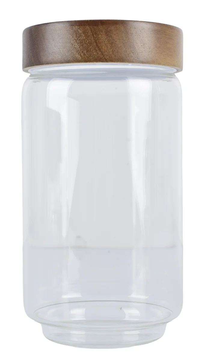 Стеклянная банка с крышкой из акации (10 x 10 см x 13 см), объемом 0,73 литра. Вес изделия составляет 310 г.