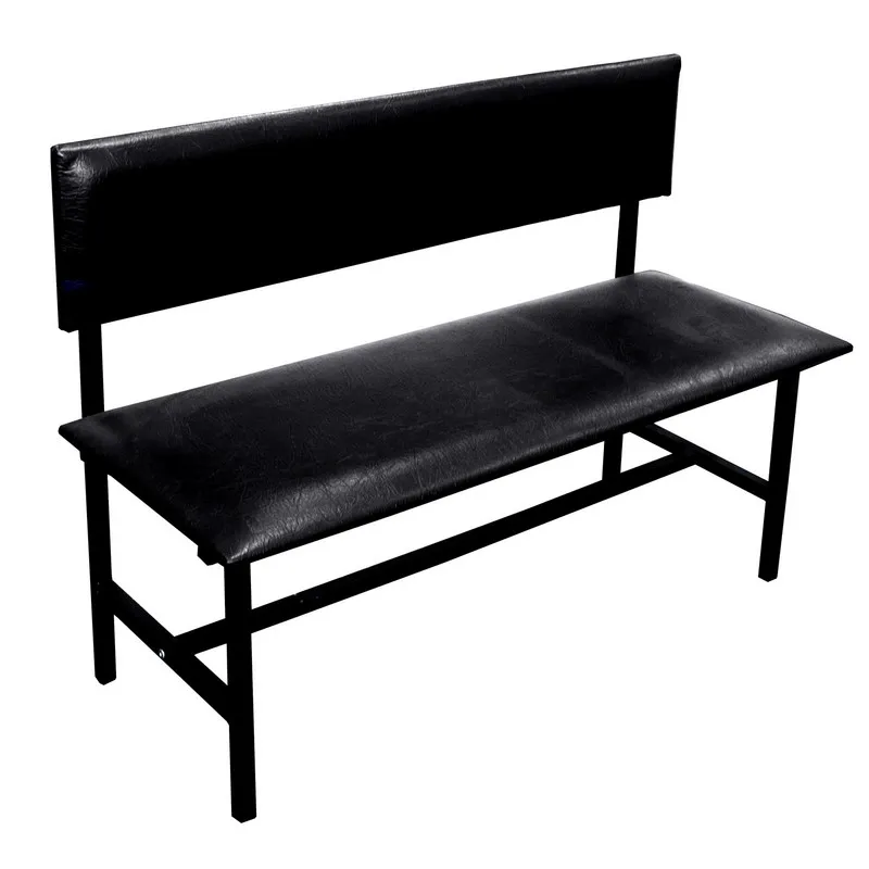 Банкетка со спинкой «Берта» имеет размеры 1500×455×865 мм. Усиленный каркас выполнен из металла с порошковым покрытием черного цвета. Обивка — искусственная кожа черного цвета. Максимально допустимая нагрузка на одно посадочное место — 120 кг.