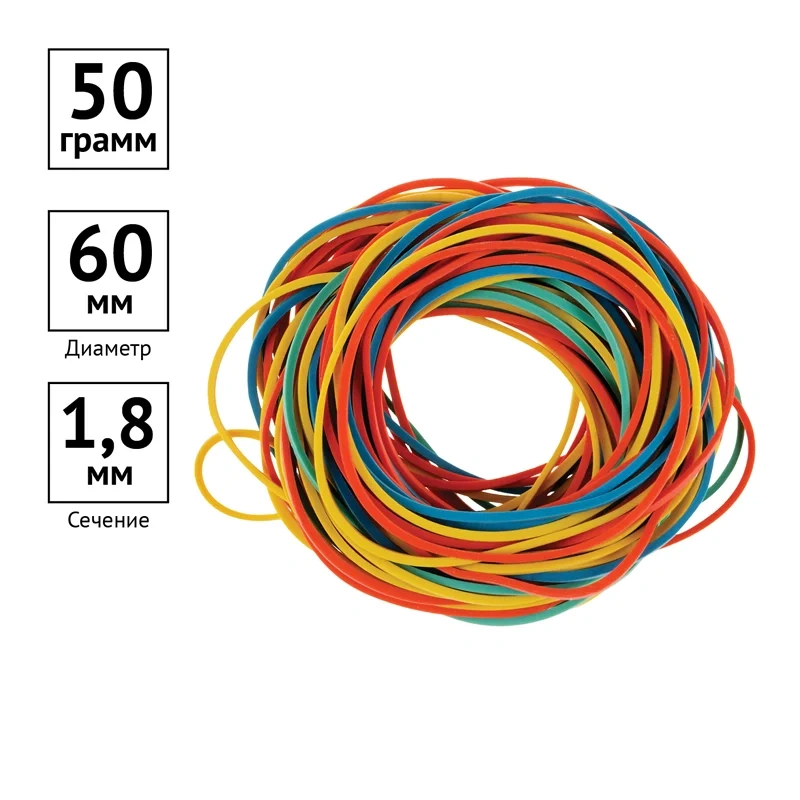 Резинки для денег 60x1мм, 1кг, разноцветные
