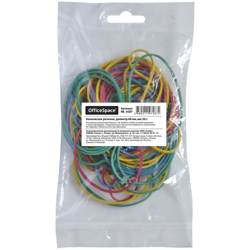 Резинки для денег Officespace 60мм, 50г, ассорти, европодвес