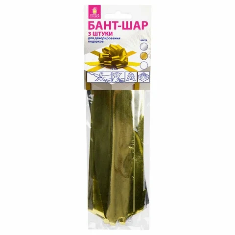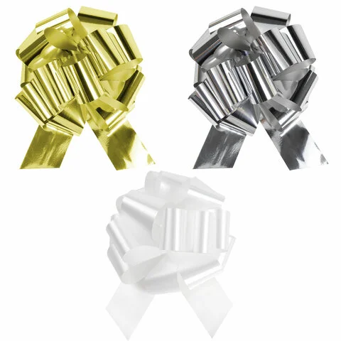 Бант-шар d = 15 см для подарка, НАБОР 3 шт., цвета металл серебристый, металл золотистый, белый, ЗОЛ