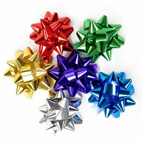Бант-звезда d = 7,5 см для подарка, НАБОР 6 шт., металлизированные цвета ассорти, ЗОЛОТАЯ СКАЗКА, 59