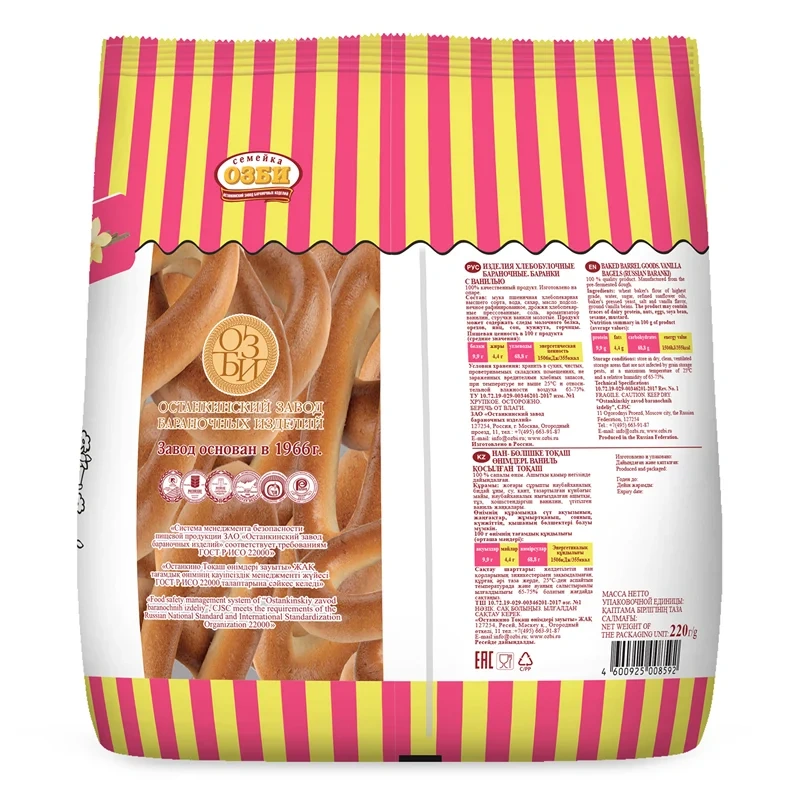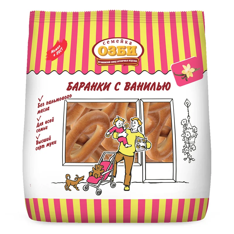 Аппетитные румяные баранки овальной формы. Стручки ванили в составе придают приятный ванильный аромат. Идеально сочетаются с чаем, кофе и молоком. Послужат отличным решением для сытного перекуса.