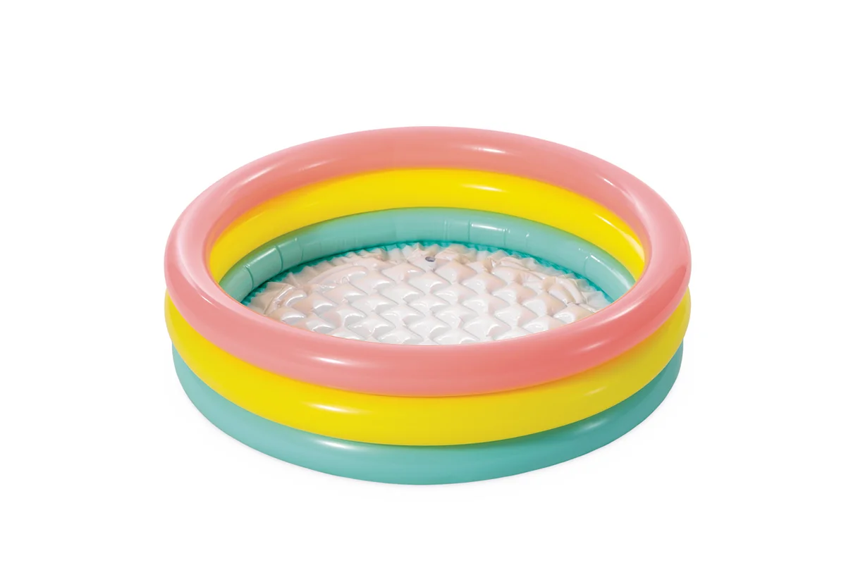 Бассейн надувной Радуга маленький 86х25см Intex 58924 имеет комфортный надувной пол и мягкие надувные бортики высотой 15см, что способствует повышению уровня безопасности для ребенка. Яркая и привлекательная расцветка обращает на себя внимание. Изготовлен бассейн из прочного винила толщиной 0,20мм. Насос приобретается отдельно. Небольшой детский надувной бассейн прекрасно подойдет для купания вашего малыша. Яркая расцветка бассейна непременно понравится как девочке, так и мальчику. Чтобы малыш проводил время в бассейне с удовольствием, можно добавить пару небольших надувных игрушек. Такой бассейн можно установить на лужайке перед домом, чтобы ребенок мог играть, купаться и быть под вашим наблюдением. Материал бассейна высококачественный винил. Бассейн предназначен для детей от 1 до 3 лет.