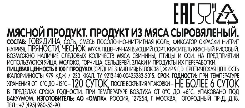 Бастурма Останкино сыровяленая высший сорт, ~280г