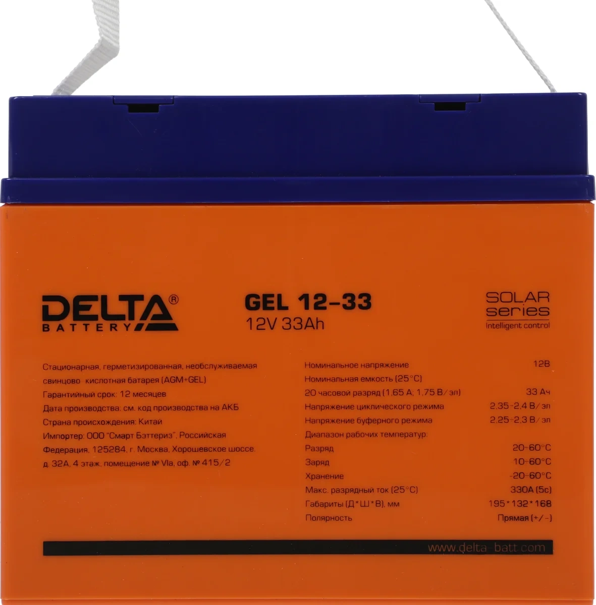 | Описание | свинцово-кислотный аккумулятор delta gel 12-33 напряжением 12в и емкостью 33ач изготовлен по техноло |