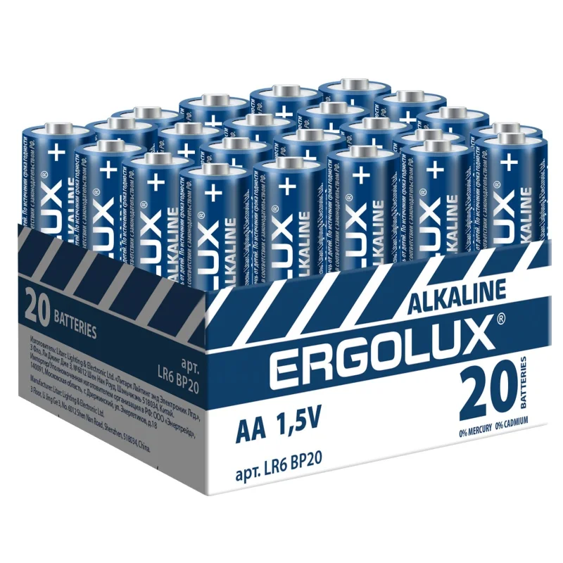 Батарейка AA пальчиковая Ergolux (20 штук в упаковке)