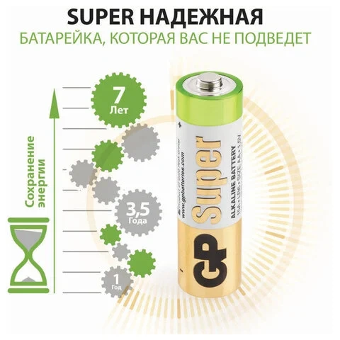 Алкалиновые элементы от компании GP работают до 7 раз дольше обычных солевых батареек.