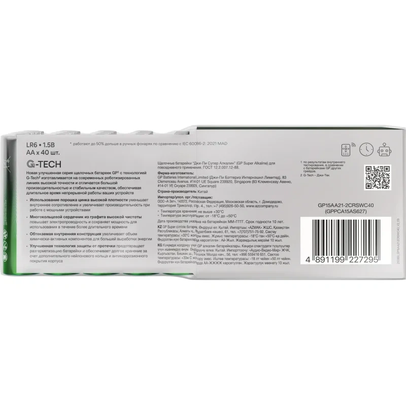 Батарейка Gp AA LR6, 1.5В, алкалиновая, 40шт/уп