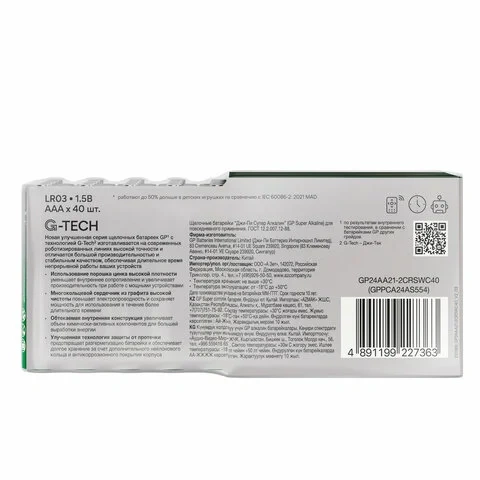 Батарейка Gp AAA LR03, 1.5В, алкалиновая, 40шт/уп