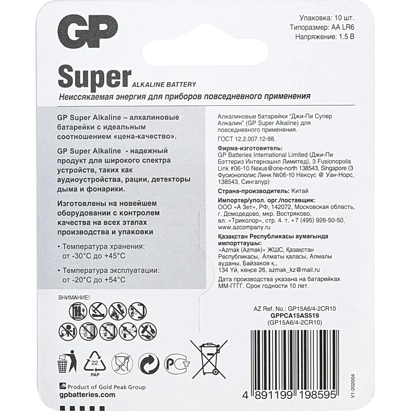 Батарейка Gp Super АА LR6, 10шт/уп