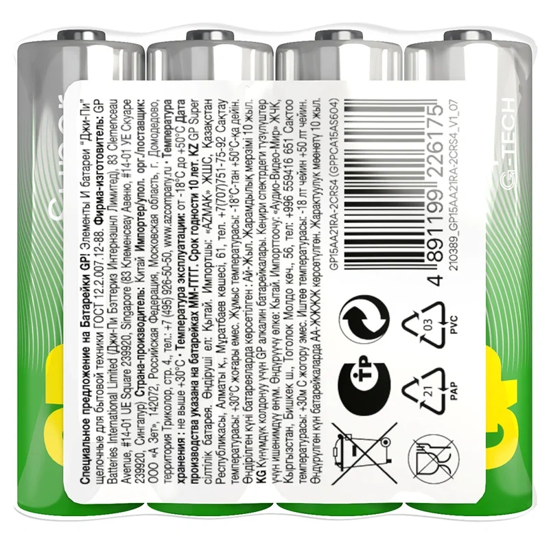 Все батарейки торговой марки GP сертифицированы согласно российскому стандарту ГОСТ и международным стандартам ISO9001 и ISO14001.