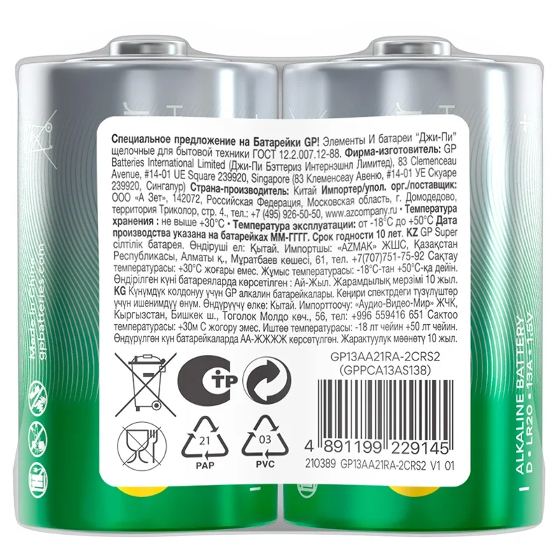 Все батарейки торговой марки GP сертифицированы согласно российскому стандарту ГОСТ и международным стандартам ISO9001 и ISO14001.