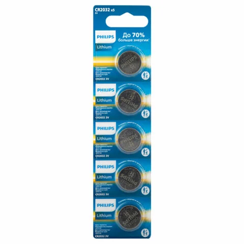 Батарейка литиевая PHILIPS Lithium CR2032, таблетка, дисковая, кнопочная, 1 шт., блистер (отрывной б