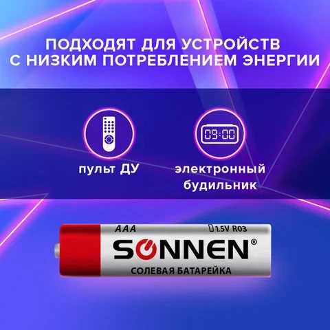 Батарейка Sonnen ААА R03, 1.5В, солевая, 4шт/уп