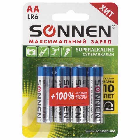 Батарейка Sonnen АА LR6, 1.5В, cупералкалиновая, 4шт/уп