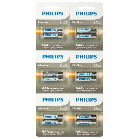 Батарейки алкалиновые КОМПЛЕКТ 2 шт (отрывной блок) PHILIPS Entry, ААА (LR03, Б0064646