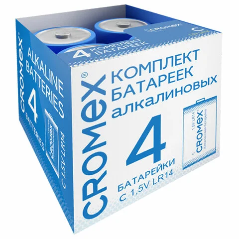 Батарейки алкалиновые КОМПЛЕКТ 4 шт., CROMEX Alkaline, C (LR14, 14А), короб, 456455