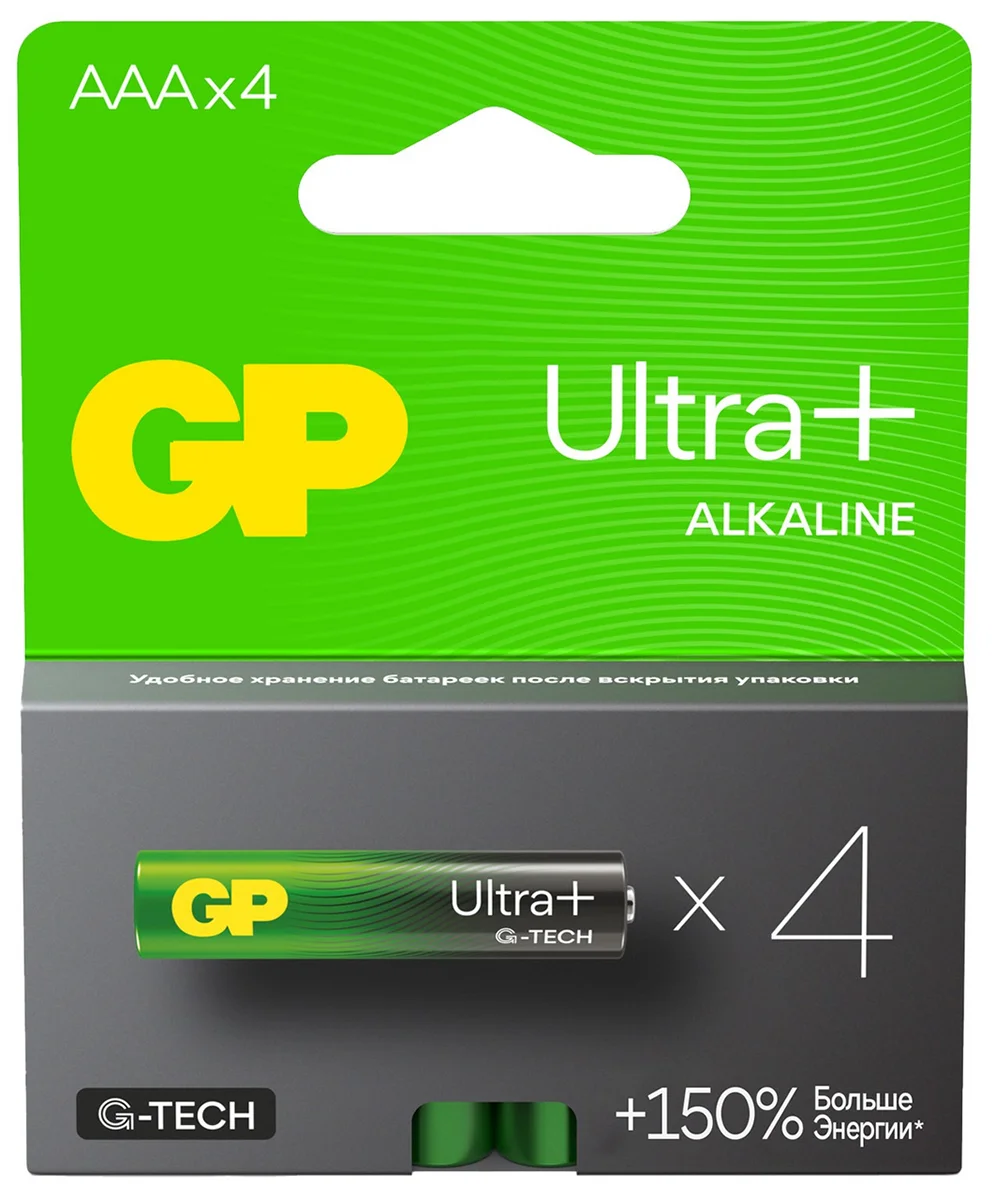 Компания GP - один из ведущих мировых производителей батареек - представляет новую, усовершенствованную линейку щелочных батареек, созданную на основе инновационной технологии G-TECH, которая выдает до 150% больше мощности в устройствах с высоким уровнем потребления по сравнению с IEC 60086-2 : 2021.А новый экологичный дизайн бумажной упаковки позволяет свести к минимуму использование пластика и обеспечивает удобство хранения. Новая серия GP Ultra Plus Alkaline - это больше энергии и больше приятных моментов от общения с близкими. Когда речь идет об игре с детьми, родители хотят получить максимум удовольствия от каждого момента - будь то захватывающие гонки на машинках с дистанционным управлением, воплощение детских фантазий с театром теней, организованного при помощи обычного фонарика или видеоигры со своими детьми. Новая линейка щелочных батареек наполняет жизнь энергией надолго и обеспечивает дополнительное время для игры в каждый момент.G-TECH: инновации, лежащие в основе новой линейки. Новая улучшенная серия щелочных батареек GP с технологией G-Tech отличается высочайшей производительностью и стабильным качеством, обеспечивая длительное время непрерывной работы ваших устройств.
