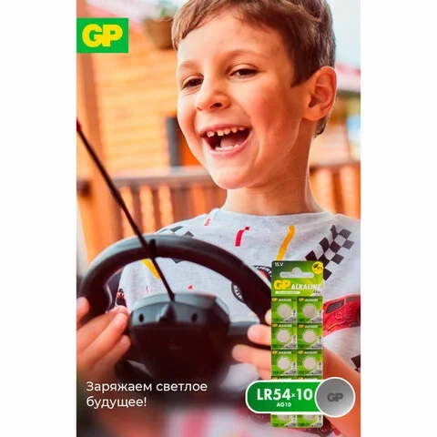 Батарейки КОМПЛЕКТ 10 шт., GP Alkaline, 189A (G10, LR54), алкалиновые, отрывной блок, 189FRA-2C10