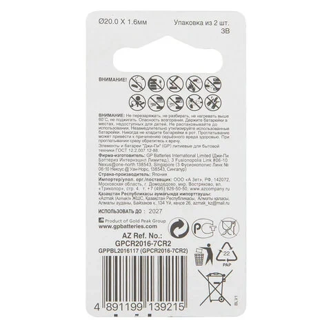 Миниатюрные батарейки типоразмера CR2016 используются в качестве долговечных источников питания для микрокалькуляторов, электронных часов, световых указателей, портативных медицинских приборах и компьютерной технике. Оптимизированная схема энергоотдачи обеспечивают надежную работу и длительный срок службы в электроприборах. Благодаря технологии низкого саморазряда батарейки GP можно хранить до 5 лет без использования. Стабильная энергоотдача и высокая емкость батареек позволяют микропроцессорам электроприборов работать стабильно на протяжении нескольких лет. Оптимальный температурный диапазон работы элемента питания — от -10 до +50 С.