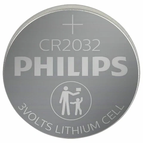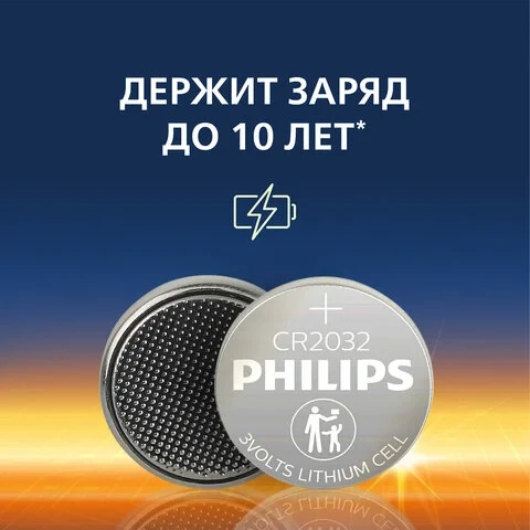 Батарейки КОМПЛЕКТ 2 шт., PHILIPS Lithium, CR2032, литиевые, блистер, Б0062716