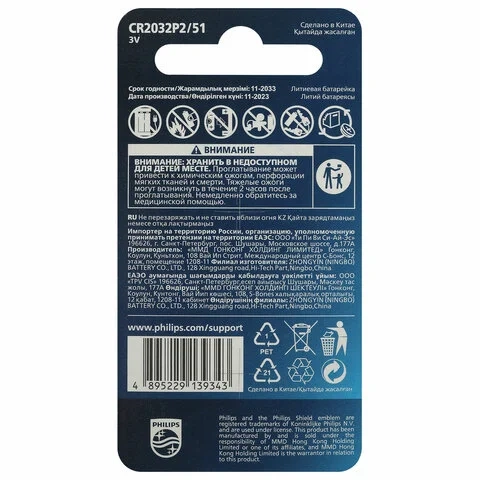 • Щелочные батареи PHILIPS содержат 0% кадмия, ртути и свинца.