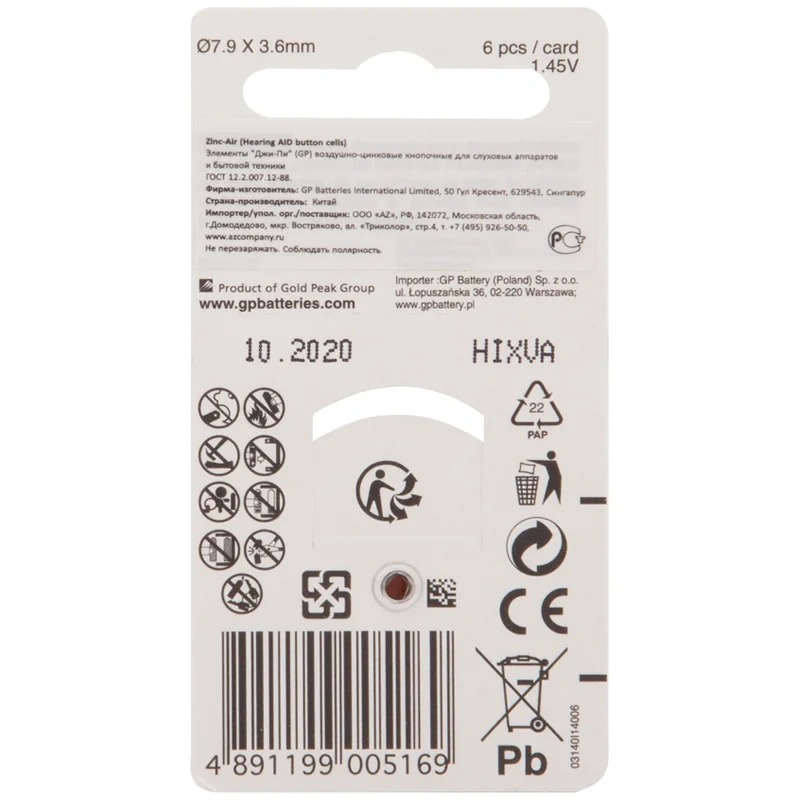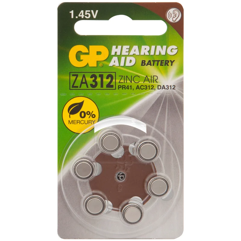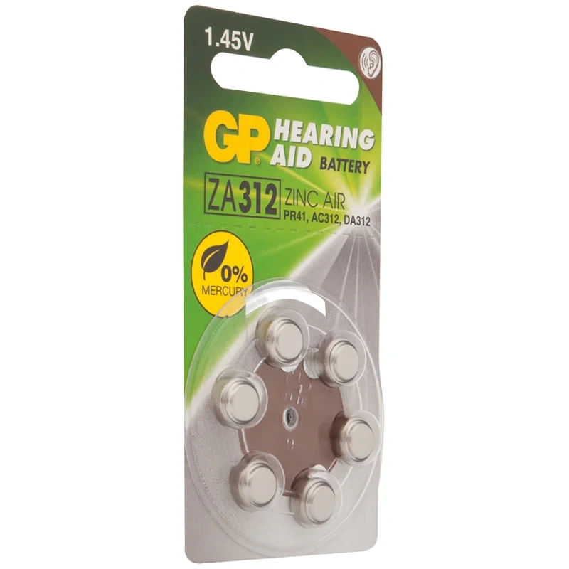 Батарейка Gp ZA31F, (PR41, AC312, AC312E, DA312, V312A) воздушно-цинковая, 6шт/уп