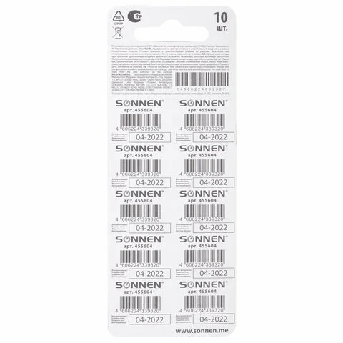 Батарейка Sonnen Alkaline 177A, G4, LR66, алкалиновая, 10шт/уп