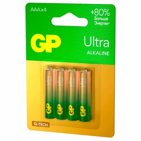 Батарейки КОМПЛЕКТ 4 шт., GP Ultra G-Tech, AAA (LR03, 24А), алкалиновые, мизинчиковые, 24AUA21-2CRSB
