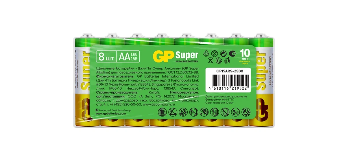 Батарейка Gp Super Alkaline AA LR6, 1.5В, алкалиновые, 4шт/уп