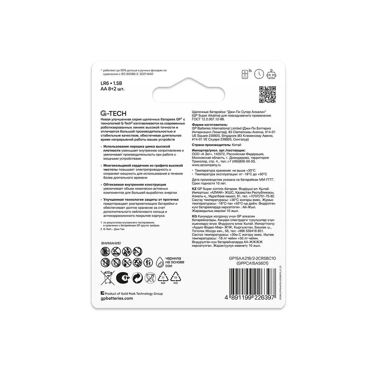 Батарейка GP Super G-Tech AA (LR6) 15A алкалиновая, 4шт (спайка)