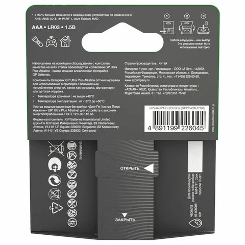 Батарейка Gp Ultra+ Alkaline AAA LR03, 8шт/уп