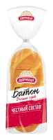Традиционный батон высшего сорта. Благодаря опарной технологии приготовления и большому содержанию сдобы, нарезной батон отличается мягкостью и воздушностью, долго сохраняет свежесть. Выпускается без консервантов, усилителей вкуса и Е-ингредиентов.