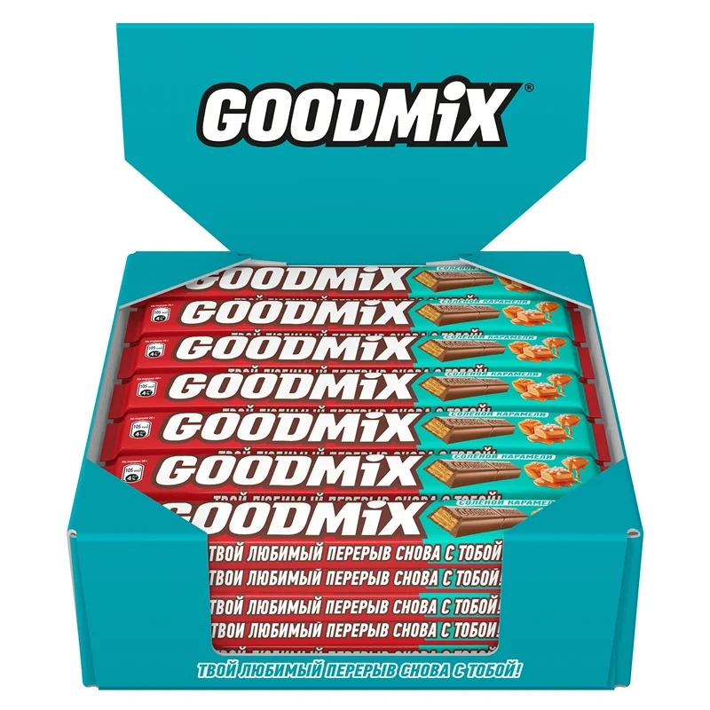Шоколадный батончик Goodmix со вкусом соленой карамели и с хрустящей вафлей. Конфета Goodmix Crispy Caramel taste со вкусом соленой карамели и с хрустящей вафлей. Goodmix Salted Caramel taste - это оригинальный микс нежного молочного шоколада со вкусом карамели и хрустящей вафли, декорированных воздушными злаковыми шариками. Батончик Goodmix - отличный вариант для быстрого утоления голода. Насладитесь вкусным батончиком Goodmix от известного производителя кондитерских изделий. Без искусственных красителей, ароматизаторов и консервантов.