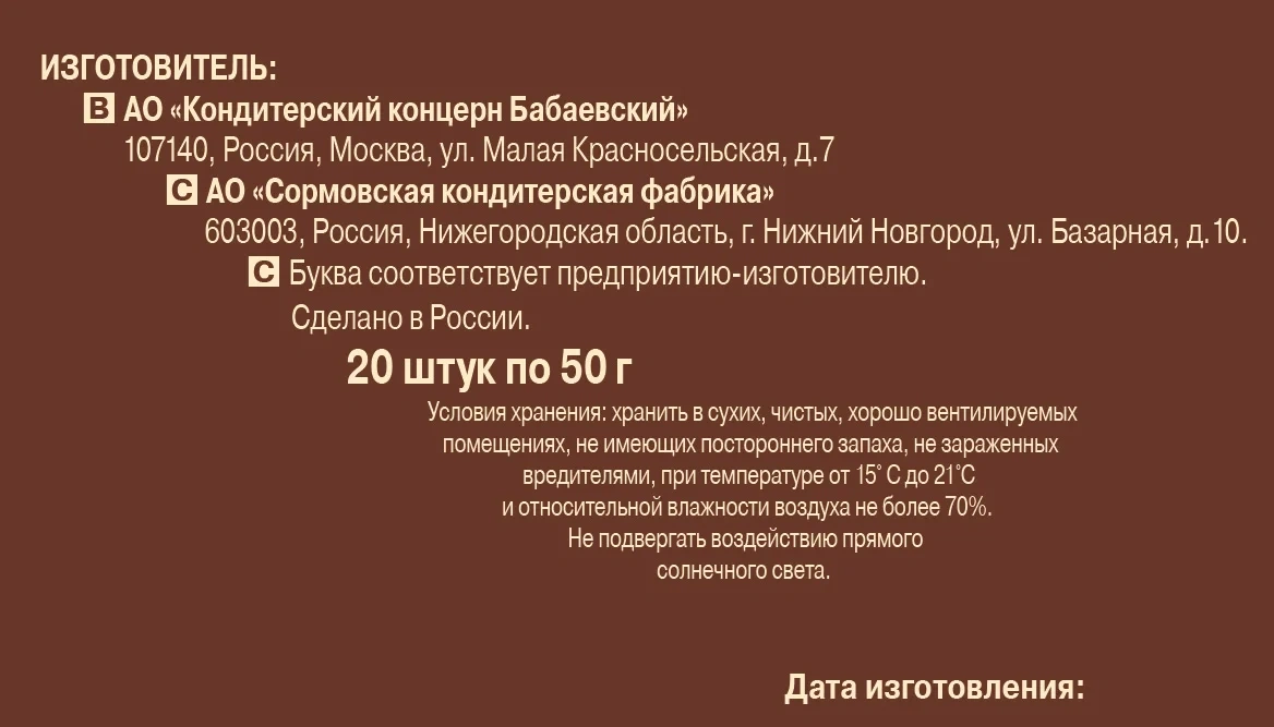 Молочный шоколад: сахар, какао-масса, какао-масло, сухое обезжиренное молоко, сывороточный порошок, молочный жир, растительные жиры (пальмовый, ши), эмульгаторы (соевый лецитин, полиглицерол полирицинолеат), натуральный ароматизатор, сахар, фундук, пшеничная мука, растительные масла (пальмовое, подсолнечное), сухое цельное молоко, пюре фундука, какао-порошок с пониженным содержанием жира, соль, разрыхлитель (гидрокарбонат натрия).