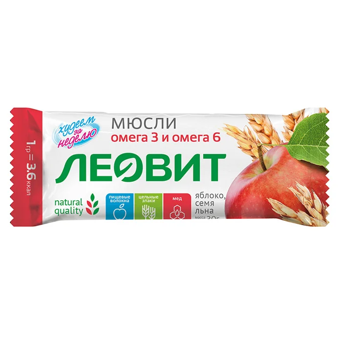 Батончик мюсли Леовит с яблоком и семенем льна 30г