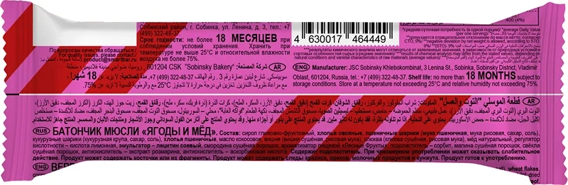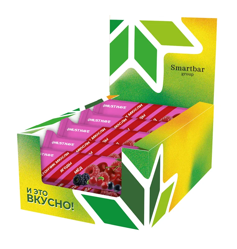 Батончик-мюсли Must Have с ягодами и медом, 25г x 25 шт - специальная линейка батончиков со злаками, в которых нет ничего лишнего: только знакомые всем злаки и яркий вкус фруктов и ягод. Идеальный выбор для тех, кто ценит полезные перекусы и хочет сделать свой рацион разнообразнее. Батончики станут настоящими помощниками для родителей, которые ищут здоровые снеки для своих детей, в том числе для полезного перекуса в школу. Батончики мюсли порадуют вас своим вкусом и натуральными ингредиентами. Они идеально подходят для людей, следящих за своим питанием и стремящихся к правильному образу жизни. Злаковые батончики. Злаковые батончики - это не только пп вкусняшки, но и отличный выбор для тех, кто ведет активный образ жизни. Удобная упаковка позвол??ет брать их с собой в поездки, тренировки или просто на прогулку. Они идеально подходят для офисного перекуса.