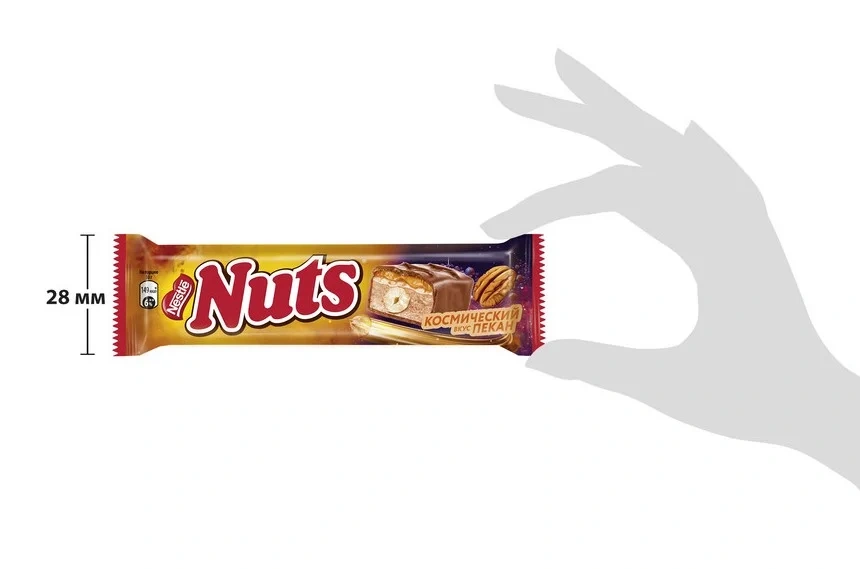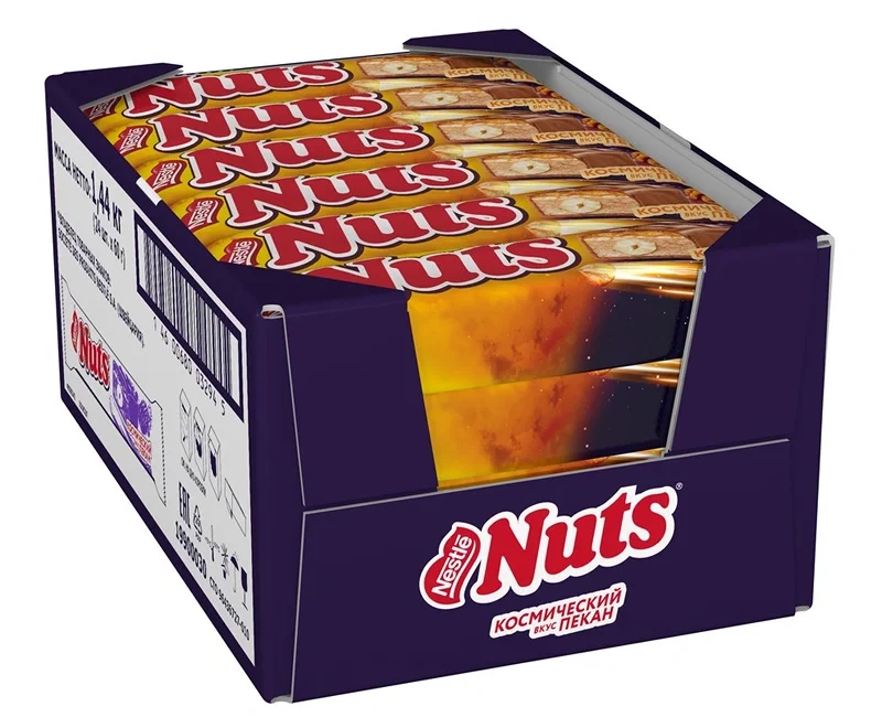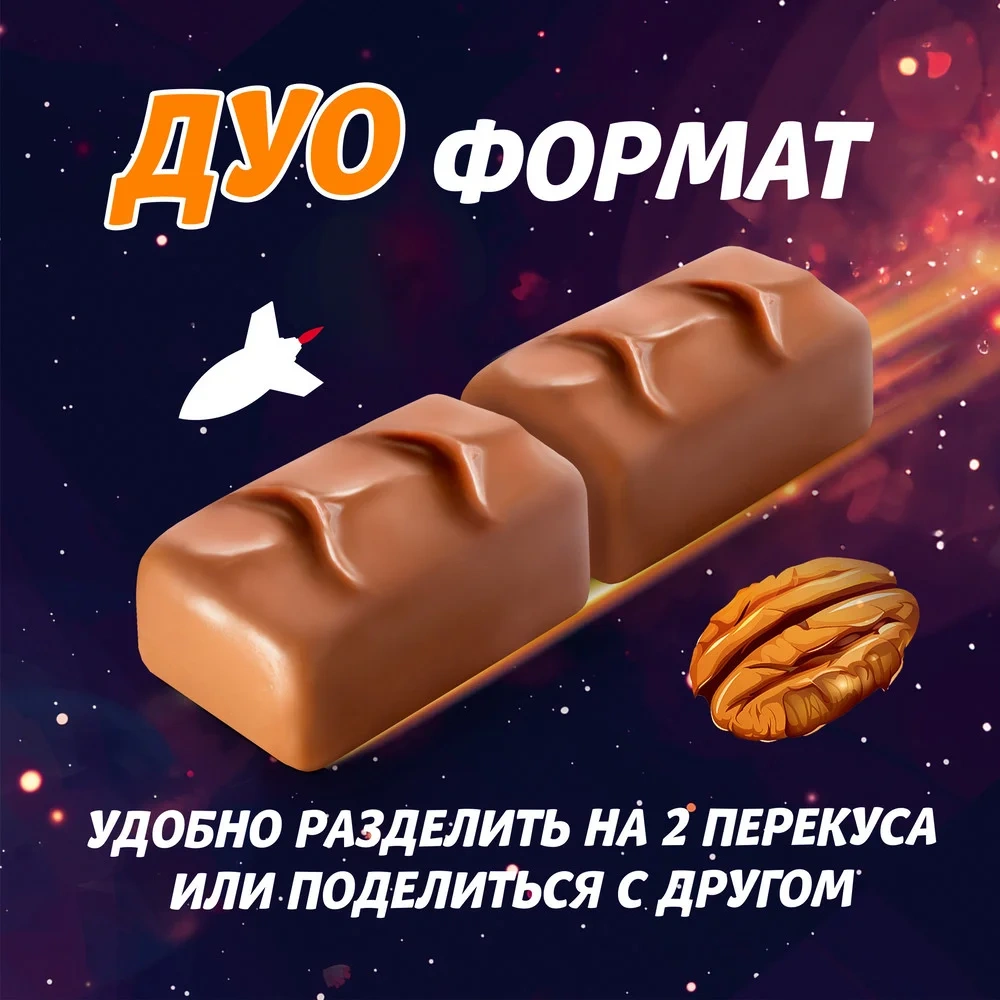 Вдохновляйся космическим вкусом шоколадной конфеты Nuts со вкусом пекана. Каждая конфета - это настоящее космическое путешествие для твоих вкусовых рецепторов. Представь себе сочетание нуги со вкусом пекана и хрустящего арахиса с мягкой карамельной начинкой. А в сердце каждой конфеты - невероятный цельный фундук, который поможет зарядить твои мозги и наполнит тебя энергией. Nuts со вкусом пекана - это крутой перекус, созданный для тех, кто ценит оригинальность и качество. Упаковка содержит две порции.