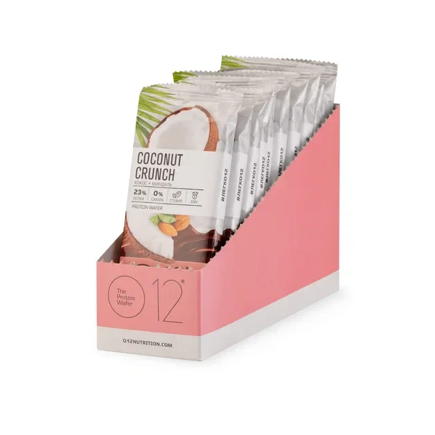 Батончик протеиновый O12 вафельный с кокосом и миндалем в молочной глазури, 50г