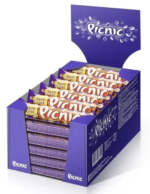 Picnic - это микс вкусов, который позволяет наслаждаться жизнью и кайфовать в любой момент. Сочетание хрустящей вафли, арахиса, изюма и карамели дарит истинное удовольствие, а добавление мягкого и нежного шоколада делает вкус еще более незабываемым. Прогулки в парке и пикники с друзьями заиграют новыми красками с ярким вкусом шоколадного батончика 'Picnic'. Открой для себя новые ощущения и кайфуй с уникальным вкусом.
