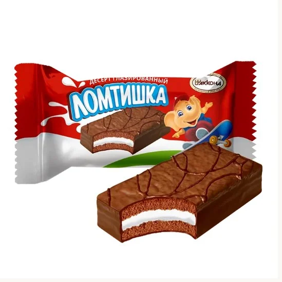 Десерт глазированный, сочетающий нежные бисквитные ломтики, декорированные глазурью, с кремовой начинкой.