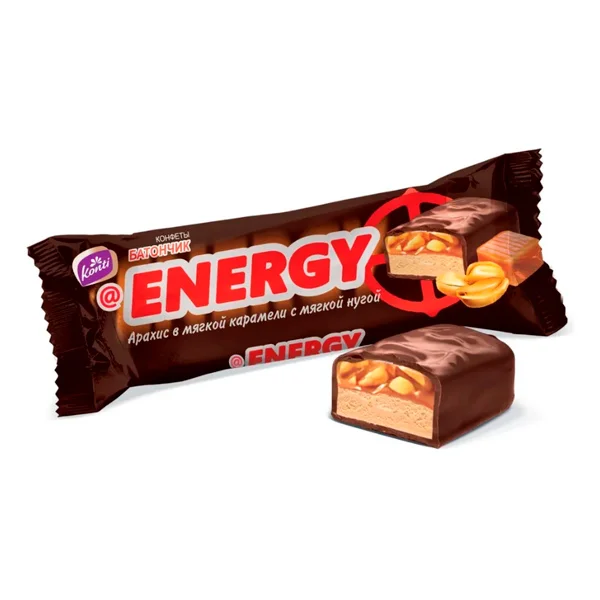 Батончик шоколадный Konti Energy арахис в мягкой карамели с мягкой нугой, 40г