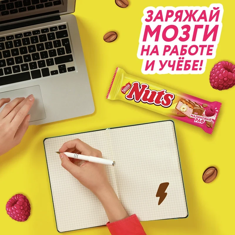 Шоколадные батончики Nuts отлично подходят в качестве быстрого перекуса между приемами пищи или как десерт к чаю и кофе.
