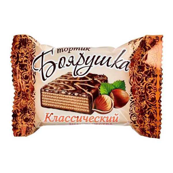 Вафельный тортик 'Боярушка' классический 38 г (40 штук в упаковке) — это порционный вафельный торт с насыщенным вкусом шоколадной начинки, украшенный дробленым арахисом и покрытый тонким слоем шоколадной глазури.